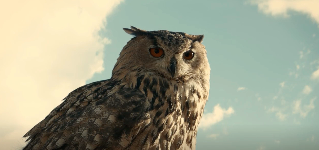 Notice how the murderer notices the owl flying away.